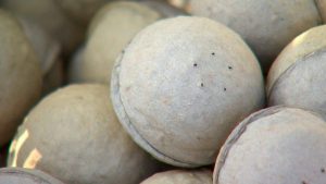 O formato e o tamanho lembram uma bola de tênis. As cápsulas podem ser feitas de diferentes materiais, como celulose e bagaço de cana, e vêm sendo usadas em canaviais no município de Barra Bonita (SP).